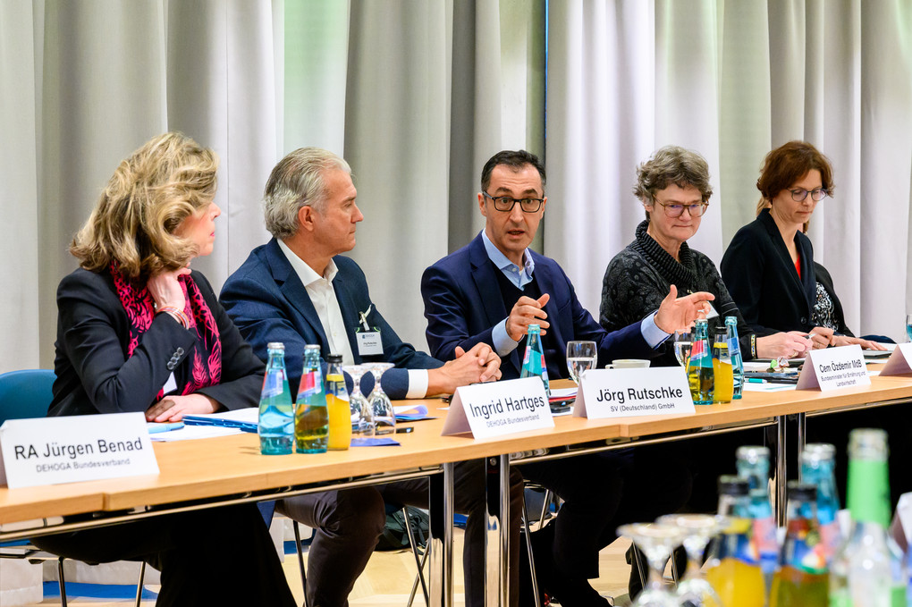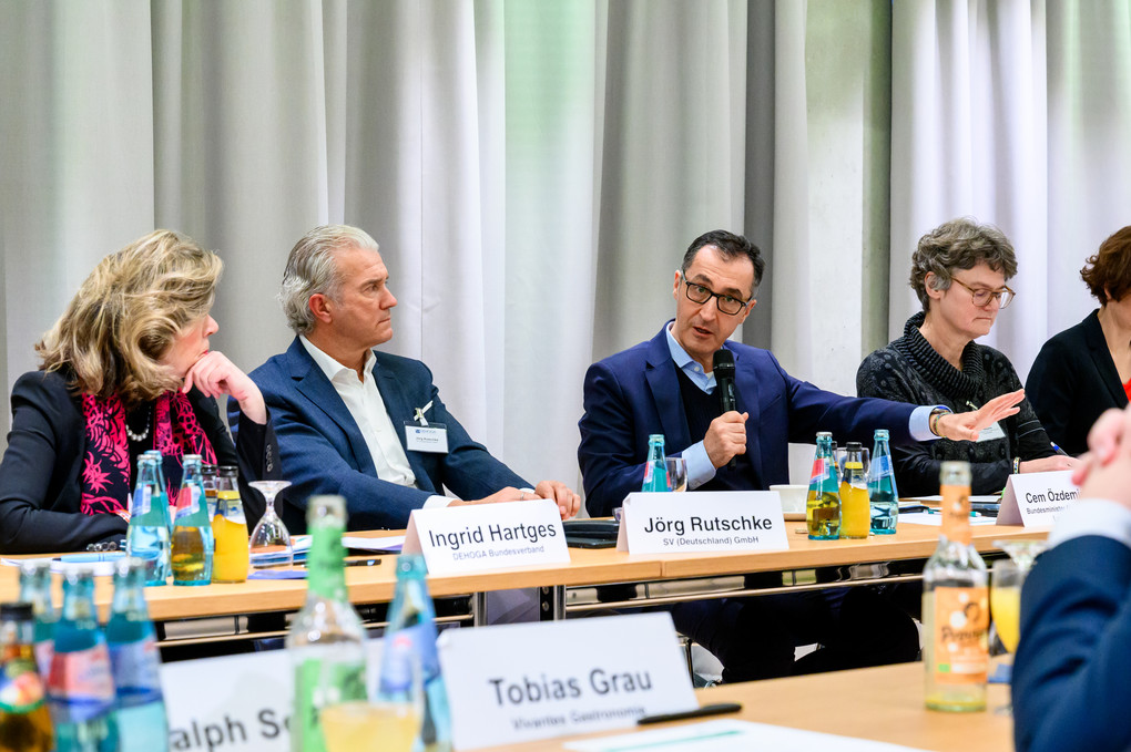 Bundesminister Cem Özdemir traf sich am 15.12.2023 mit Repräsentanten der Gemeinschaftsgastronomie im DEHOGA, um den Austausch zu den praxisrelevanten Herausforderungen bei der Realisierung der Ziele der Ernährungsstrategie der Bundesregierung zu intensivieren. Dabei betonte der Bundesminister für Ernährung und Landwirtschaft die Bedeutung der Gemeinschaftsverpflegung. Jörg Rutschke, Vorsitzender der Fachabteilung Catering DEHOGA und CEO der SV Group (Deutschland) untermauerte: "Die Gemeinschaftsgastronomie soll eine Vorreiter- und Vorbildrolle bei der Umsetzung der Ernährungsstrategie einnehmen, umso mehr gilt es Probleme bei der Realisierung konkret zu benennen."
